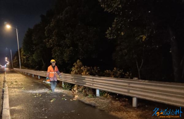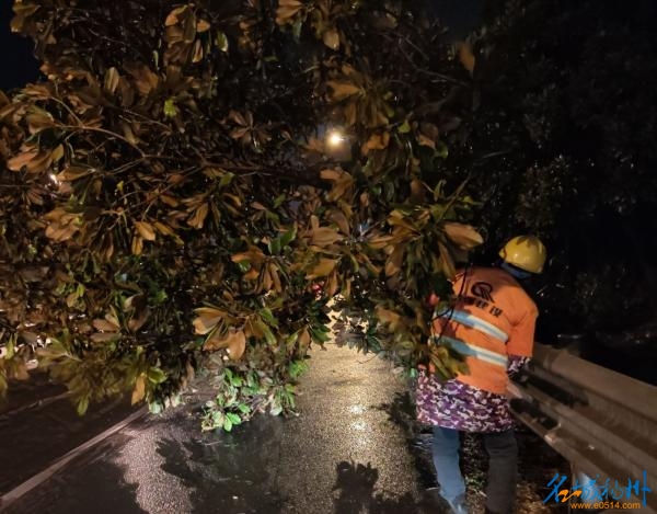 高邮公路深夜紧急处置倒伏树木