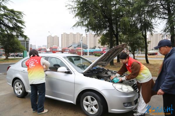 活动现场设置了多个志愿服务项目,包括法律服务咨询、测量血压、免费理发、加玻璃水、测量胎压等。志愿者细心地为过往司乘测量血压,普及健康生活小常识。经验丰富的理发师用精湛的技艺为货车司机群体修剪出利落的发型,为他们解决长途驾驶的生活难题。值得一提的是,本次活动还引入了“汽车义诊”,为汽车提供免费测量胎压、清洗挡风玻璃、加玻璃水等服务,提升行车安全。