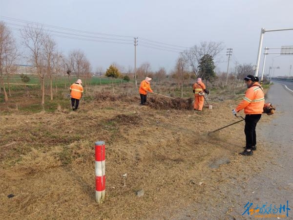 三是开展春季养护,美化路域环境。抢抓入春气温回升绿化黄金期,在做好增绿补绿的同时,组织养护公司对辖区国省干线公路进行春季养护,开展扶正、除草、浇水,施肥等工作。运用机械和人工相结合的方式开展清扫路面、疏通水沟、清除杂草等日常养护工作,全面清理干线公路沿线的路肩、绿化中的垃圾杂物,对里程碑、百米桩、标志标牌等进行全面清洁,确保附属设施完好清晰、整洁有序。入春以来,累计出动养护工392人次,工具作业车56台班;完成机械化清扫1236公里,清理路面中分带71300平方米,修剪绿化枯枝及清理杂树14000 平方米,进行保温料箱修补90立方米。