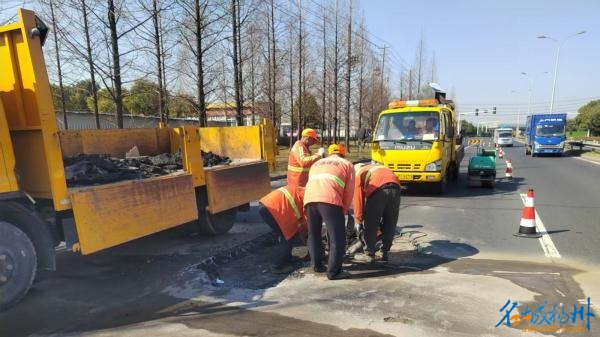 针对春季气候多变特点,养护人员化身“天气猎人”,建立气象联动机制,一旦抓住连续晴好天气窗口期便立即启动路面专项整治。在328国道,养护专业队伍不断奋战,高效处置路面坑塘,修复更换沿线防眩板、标志标牌等。机械清扫与人工精细化保洁相结合,确保路域环境“一眼净”。