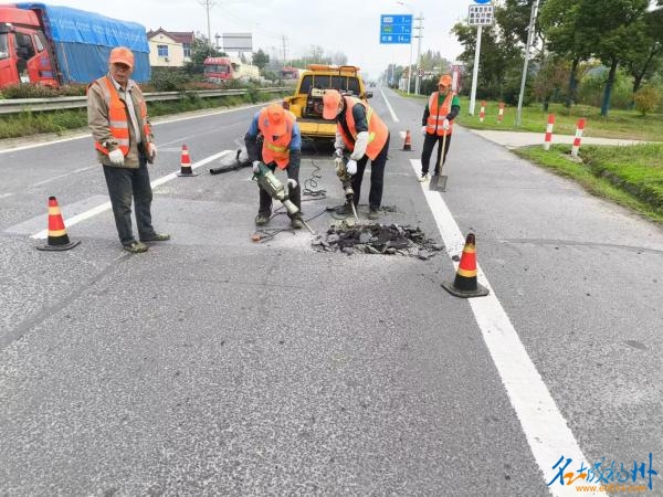 集中开展路面病害处治作业。采取日常巡查、定期巡查相结合的方式详细统计路面病害,并组织养护企业集中对路面坑塘进行机械化修补,完成路面坑塘修补40余立方,提高行车安全性和舒适性。