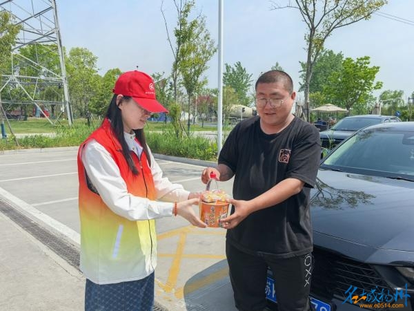 活动当日,志愿者们统一身着红色马甲,迅速投入到服务工作中。他们准备了充足的物资,将矿泉水、泡面、面包等逐一送到在服务区短暂休整的货车司机手中,为司机们补充能量、缓解旅途疲惫。