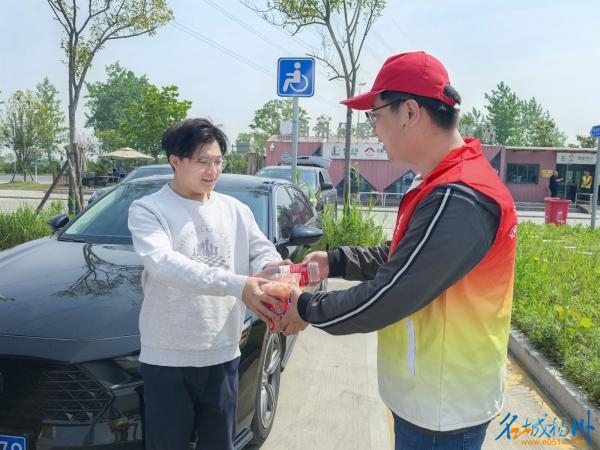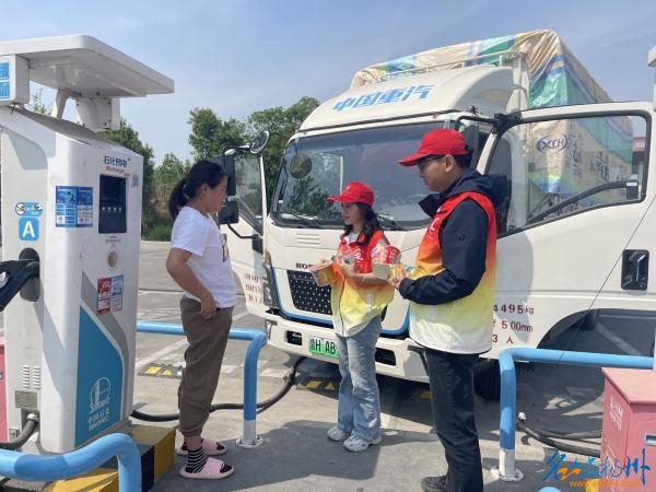 “五一期间路上车流量大,行车途中要控制好车速,保持安全车距,累了就到服务区多休息会儿。”志愿者们一边发放物资,一边向司机们温馨提示节日期间道路交通安全注意事项,提醒他们合理安排行程,避免疲劳驾驶。同时,志愿者们充分发挥专业特长,对司机们提出的路线规划、实时路况、绕行方案等问题,耐心解答,为司机们的出行提供了参考。