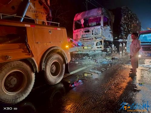 8月10日晚,S264樊川段发生一起交通事故,一辆装载木材的大货车因交通事故引发火灾。江都公路部门迅速启动应急预案,联合交警、消防等部门展开救援,成功控制火势并恢复交通,事故未造成人员伤亡。