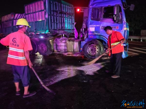 233国道突发车辆侧翻 高邮分中心协同处置护安全
