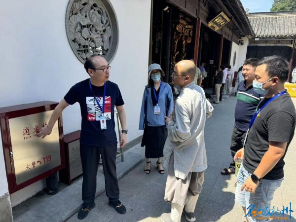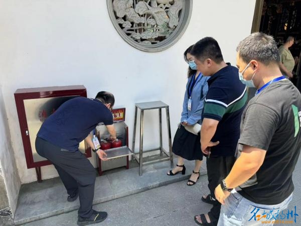 网格员深入了解寺庙安全保障措施的落实情况以及消防设施配备和值班值守等情况,并随机抽查了寺管会工作人员对消防设施掌握情况。