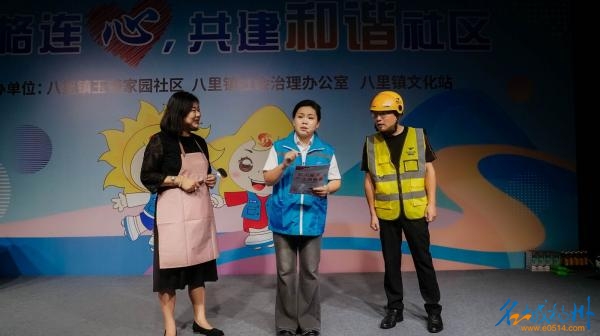 小品《社区里的那些事》以幽默方式再现网格员日常,反诈情节融入自然,引得观众笑声不断。随后反诈有奖问答将气氛推向高 潮,居民争相参与,8名幸运观众喜获奖品。