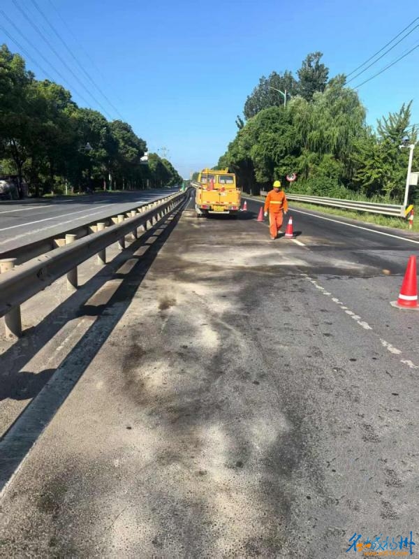 仪征公路:快速处置路面油污 保障省道安全畅通