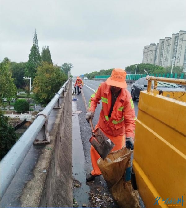 台风“桦加沙”来袭 广陵公路人彻夜奋战保畅通