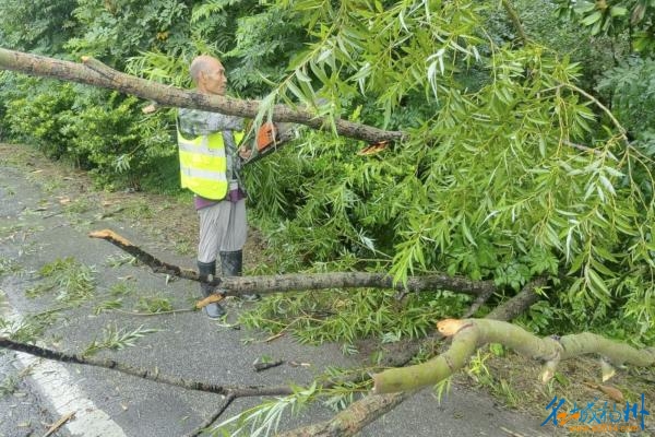 宝应公路:冒雨清理倒伏树木,全力守护公路安全