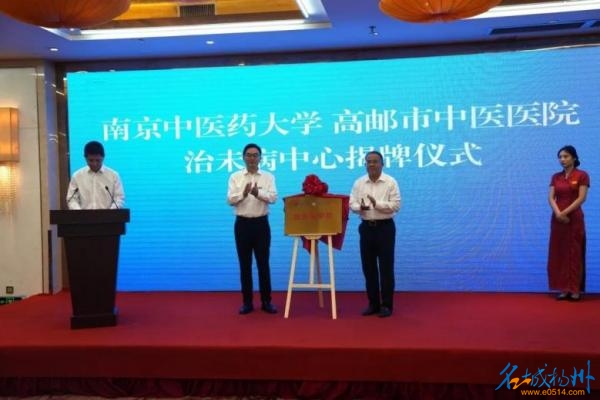 南京中医药大学周恩超副校长与高邮市卫健委主任顾永祥共同为“南京中医药大学-高邮市中医医院治未病中心”揭牌,构建全生命周期中医药健康服务完整链条。