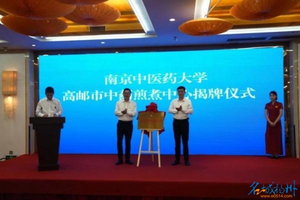 南京中医药大学周恩超副校长与高邮市卫健委党委书记王振共同为“南京中医药大学-高邮市中药煎煮中心”揭牌,保障中医药服务质量。