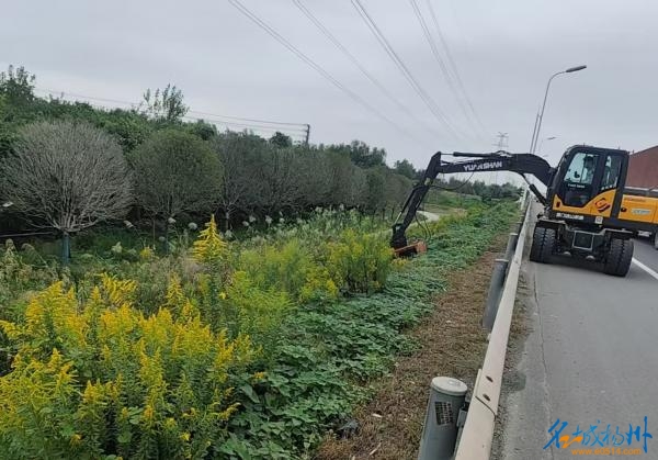 邗江分中心:清理“一枝黄花”守护公路生态线