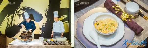 天璟融园以食为媒,巧妙地将传统非遗技艺融入当代雅集生活场景之中。宾客们在品鉴扬州炒饭时,不仅能感受到“食不厌精”的深厚文化底蕴,更能在这烟火气中,真切地体验到项目对非遗美学与生活方式的极致追求。每一勺、每一箸,都仿佛是非遗技艺与圈层精神的共鸣,千年文脉在此刻焕发出新的生机与活力,传承不息。