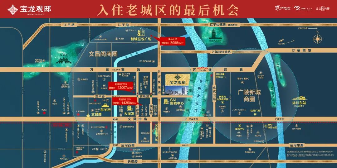从『运河宝龙观邸』出发,向西步行即达扬州主城东关街、东关古渡、文昌阁、何园等闻名中外的历史名胜古迹林立,将他人艳羡的美好变成生活的日常。