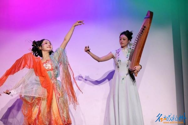 当竖筝遇上翩跹舞姿,上演的是一曲《锦鲤逐云记》。舞者身姿灵动婉转,似锦鲤逐云。乐声与舞步相映成趣,将园林夜色里的浪漫与诗意娓娓道来。