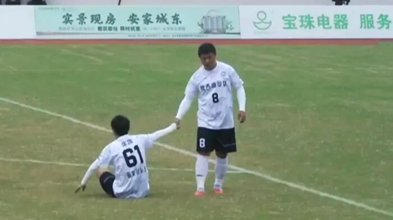 卢茂春简单处理了伤处后,毅然决然地重新投入战斗,赛进行到第54分钟,卢茂春一记精彩的破门为景区队打入1粒进球。