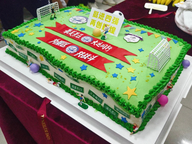 为了庆祝这来之不易的突破,景区队此行特意准备了庆功蛋糕。蛋糕别出心裁地设计成绿茵场的造型,四周贴满了全体球员的名字与号码,象征着这场胜利属于团队的每一个人。在客队休息室里,队员与球迷们共同分享了这份甜蜜。
