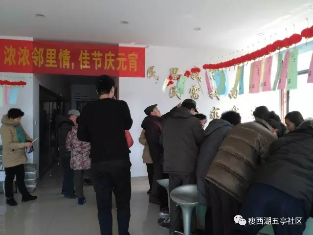 农历正月十五,是我国民间传统的元宵节,元宵节这一天,大家都要看花灯、玩花灯、做元宵、吃元宵。为营造元宵欢乐祥和的传统节日气氛,丰富社区居民文化活动,共同创建文明、健康、和谐、美好的新社区。2017年2月10日下午,瘦西湖街道五亭社区开展了“猜灯谜、包元宵、喜庆闹元宵”活动。