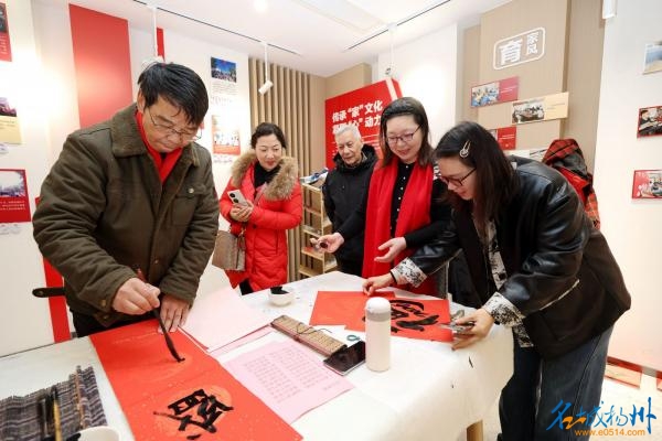 此次活动是双方签署文明共建协议后,将“帮繁荣文化、促文明提升”合作方向落地落实的生动实践。活动现场,扬州分行书法志愿者们挥毫泼墨,一副副寓意吉祥的春联、一张张笔力遒劲的“福”字备受居民欢迎。现场氛围热烈,不少有书***底的居民受到感染,纷纷提笔加入,亲手写下对新年的期盼。另一边,摄影志愿者们精心布置了“马上有福”“马上发财”等喜庆背景,用镜头为一个个家庭定格下团圆幸福的瞬间。这一温馨场景也吸引了社区里的摄影爱好者,他们纷纷拿出手机,从不同角度捕捉身边的欢乐与年味。居民们或手捧墨迹未干的春联,或面对镜头展露笑颜,现场洋溢着温馨祥和的气氛。