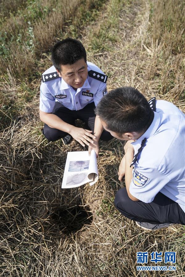 陕西也是古往今来盗墓贼们“垂涎”之地。今年1月,有村民发现,在国家级文物保护单位:秦雍城遗址的核心保护区内,竟然出现了多处盗洞。据了解,雍城是先秦古都,是秦国都城中延续时间最长、执政国君最多的一座都城,也是秦国发展史上一座重要的里程碑。经过2000多年的历史变迁,秦都雍城的地面建筑已荡然无存,但留下的丰富的地下遗存。图为凤翔县公安局刑侦大队的民警在查看破案追回的文物唐代陶俑镇墓兽(8月3日摄)。新华社记者 殷刚 摄