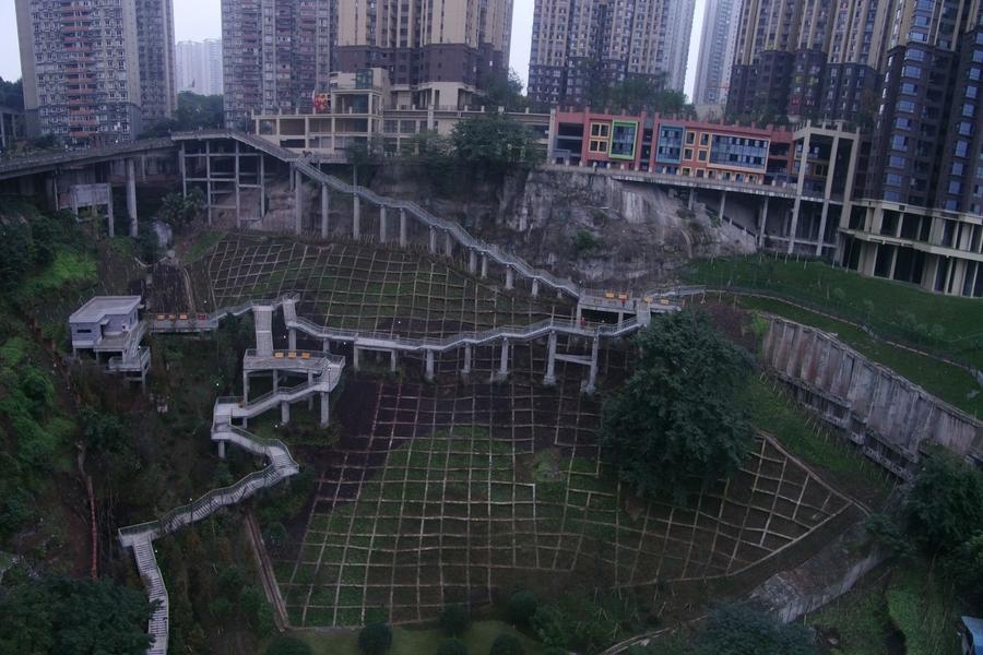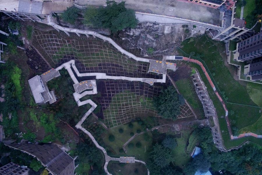 2017年12月1日,重庆,以悬空栈桥为主的下肖家湾公园正式开放。公园最大特点是健身步道很大一部分采取悬空架设的栈道桥,在重庆尚属首例。