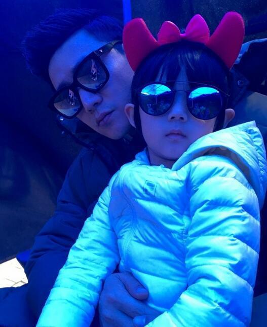 陆毅带两女儿去游乐园 东北老婆大长腿抢镜
