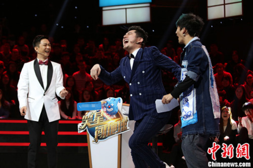 中新网2月18日电 由东方娱乐原创出品的全国首档话题喜剧综艺秀《笑星闯地球》本周迎来笑星队队长大张伟的好兄弟,著名主持人钱枫。重现经典,大张伟钱枫搞笑演绎“容嬷嬷扎紫薇”片段;老熟人钱枫多年“仅靠”一个鸵鸟舞行走演艺圈, 大张伟毫不嘴软地“讽刺”:“演艺圈多好混啊!”